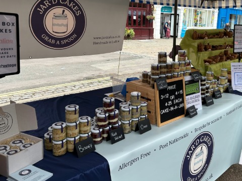 You can find Jar'd Cakes at Ludlow Market on Saturdays and occasional Specialist Sunday Markets.